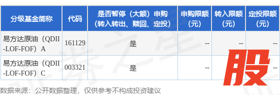 本站消息,8月27日易方达基金管理有限公司发布《易方达原油证券投资基金(QDII)2025年9月1日暂停申购、赎回及定期定额投资业务的公告》。公告中提示,为2025年9月1日为纽约证券交易所非交易日,自2025年9月1日起易方达原油证券投资基金(QDII)2025年9月1日暂停申购、赎回及定期定额投资业务,下属分级基金调整明细如下: